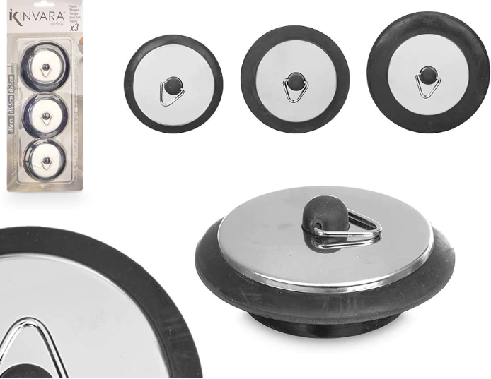Geschikt voor elke afvoer in de keuken, dankzij de 3 verschillende formaten van deze afvoerpluggen.