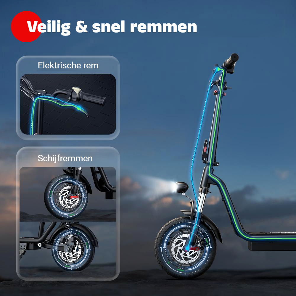 De Iscooter i12 is ontworpen met jouw comfort in gedachten. Het zachte zadel zorgt ervoor dat zelfs langere ritten aangenaam blijven. Daarnaast is de step uitgerust met een krachtige accu die een bereik tot wel 35 kilometer mogelijk maakt. Zo kun je met een gerust hart op pad, wetende dat je niet snel zonder power komt te zitten.