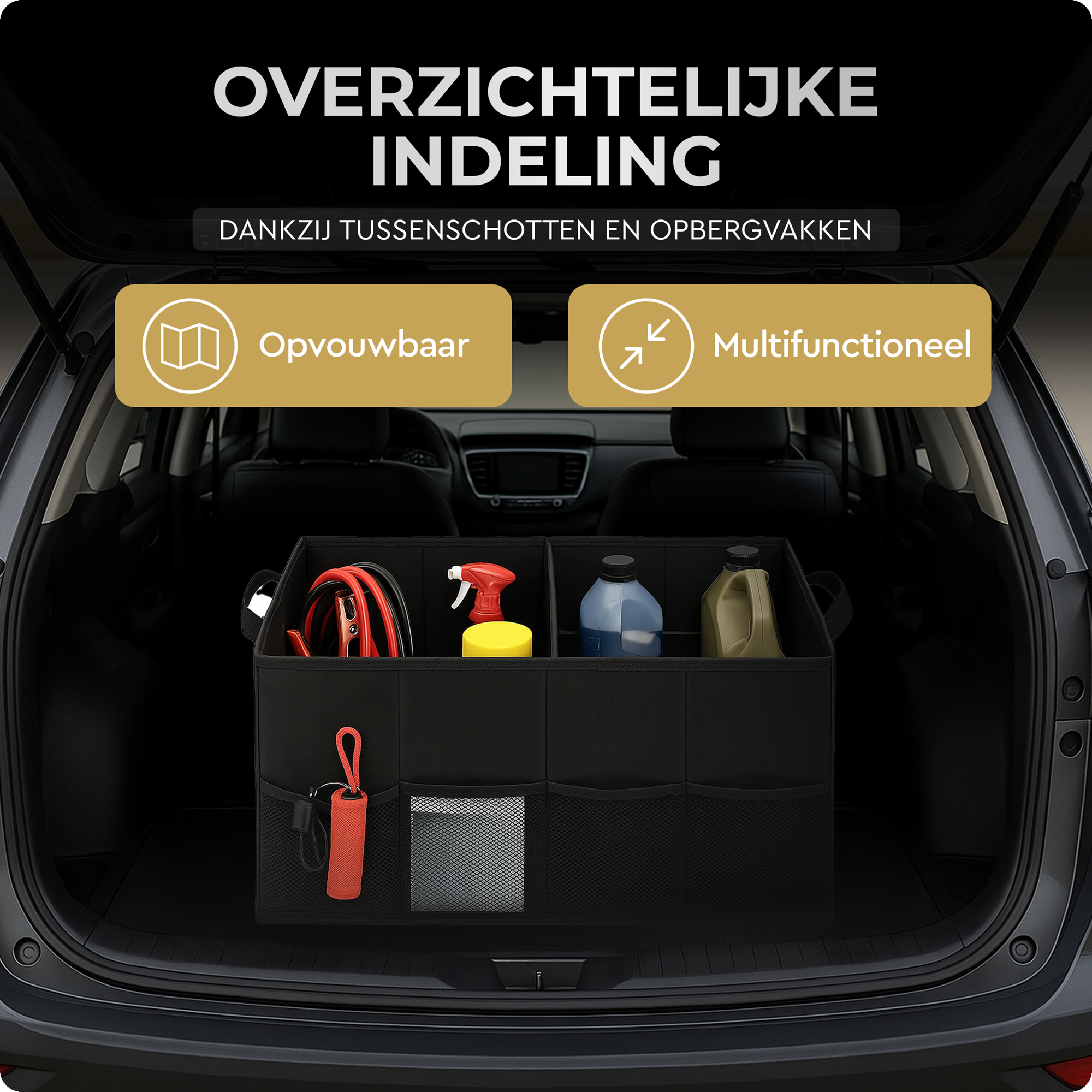 Kofferbak tas met tussenschotten en opbergvakken